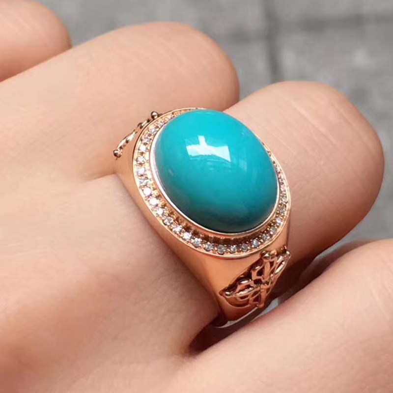 原矿绿松石戒指定制18K金镶嵌支持其他工艺原石毛料矿山直播捡漏热门设计联盟服务商
